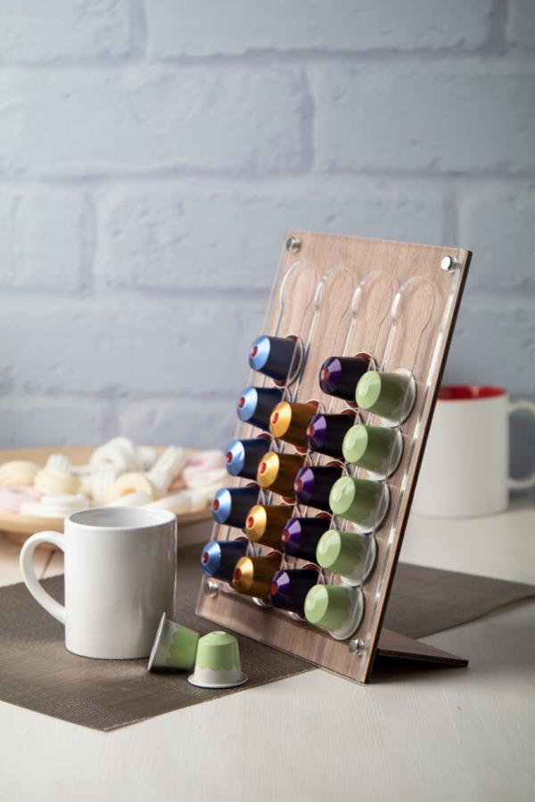 SKU: AP718554Držač kapsule za kavu za 24 Nespresso® kapsula, šperploča od bambusa i akril. Isporučuje se rastavljen.