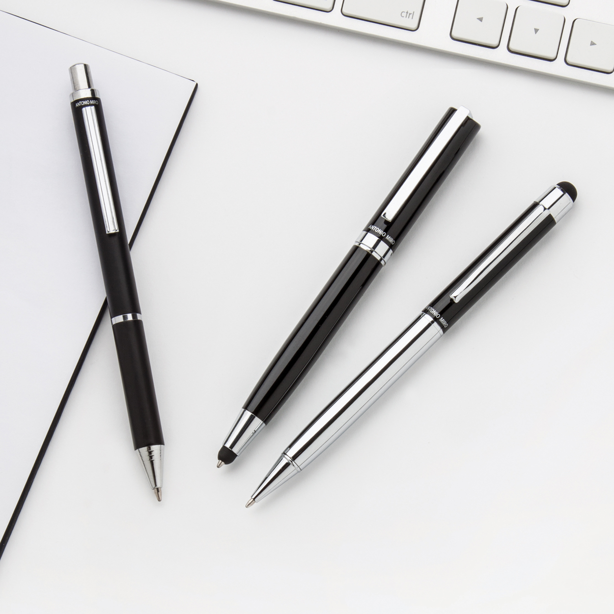 0 out of 5(0)Metalna kemijska olovka s touch screenom u poklon kutiji, s plavim punjenjem. Proizvod marke Antonio Miro.