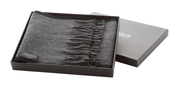 Pamuk i viskozni šal za muškarce, u crnoj poklon kutiji. Proizvod marke Alexluca.