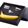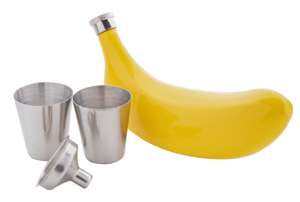 SKU: AP845179Kukica od nehrđajućeg čelika u obliku banane s 2 čaše i lijevkom, 150 ml. U crnoj poklon kutiji.