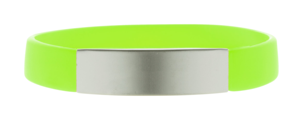 Silikonski ručni trak sa srebrnom aluminijskom pločom.