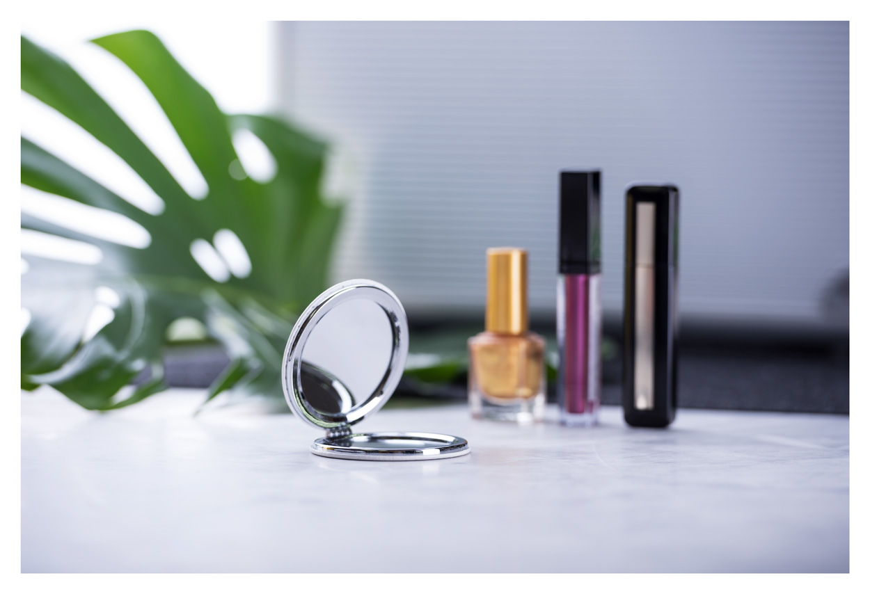 PU kožom prekriveno džepno ogledalo s normalnim i povećalom.