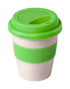 0 out of 5(0)Termo šalica od ekološke plastike s bambusovim vlaknima, jednoslojna termo šalica sa silikonskim poklopcem i držačem, 380 ml.