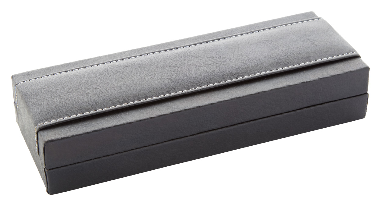 0 out of 5(0)Elegantna metalna kemijska olovka s tjelom od PU kože i sjajnim kromiranim gornjim djelom, klipsom i vrhom, u PU kožnoj poklon kutiji. S plavim punjenjem. Proizvod marke André Philippe